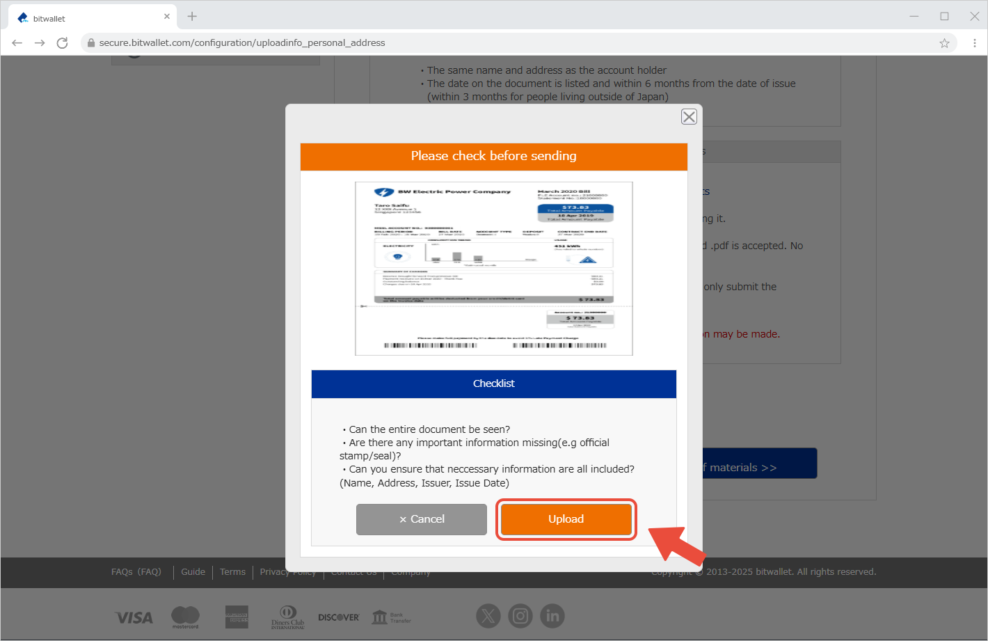 ចុច "បញ្ជូនឯកសារ" នៅក្នុង "ភស្តុតាងនៃអាសយដ្ឋានបច្ចុប្បន្ន" នៅក្នុងផ្នែក "ឯកសារផ្ទៀងផ្ទាត់" ។