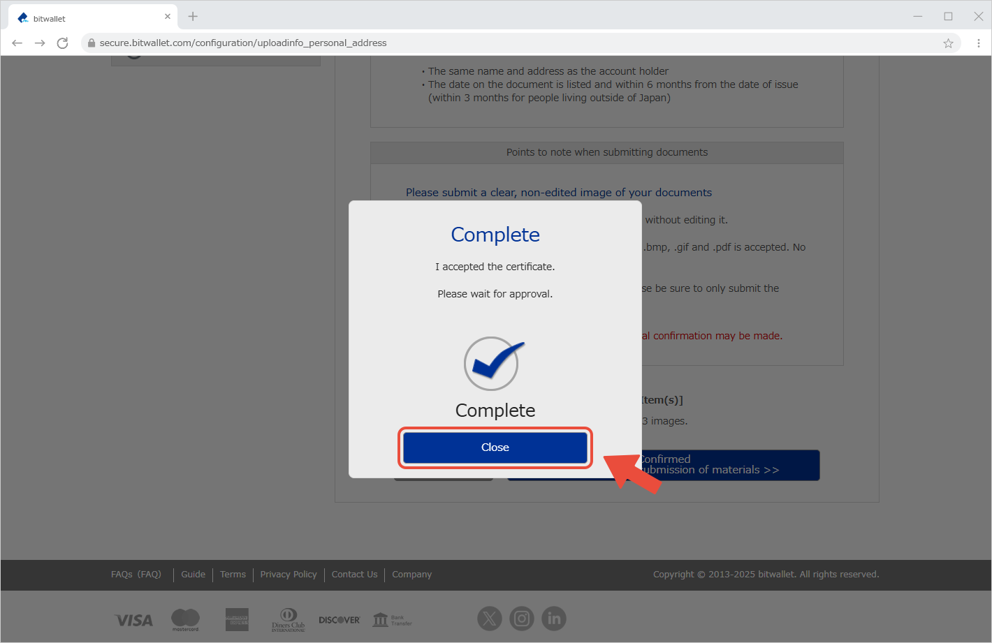 បន្ទាប់ពីការយល់ព្រមលើឯកសារអត្តសញ្ញាណត្រូវបានបញ្ចប់ អ្នកនឹងអាចបញ្ជូនភស្តុតាងនៃអាសយដ្ឋានបច្ចុប្បន្នបាន។