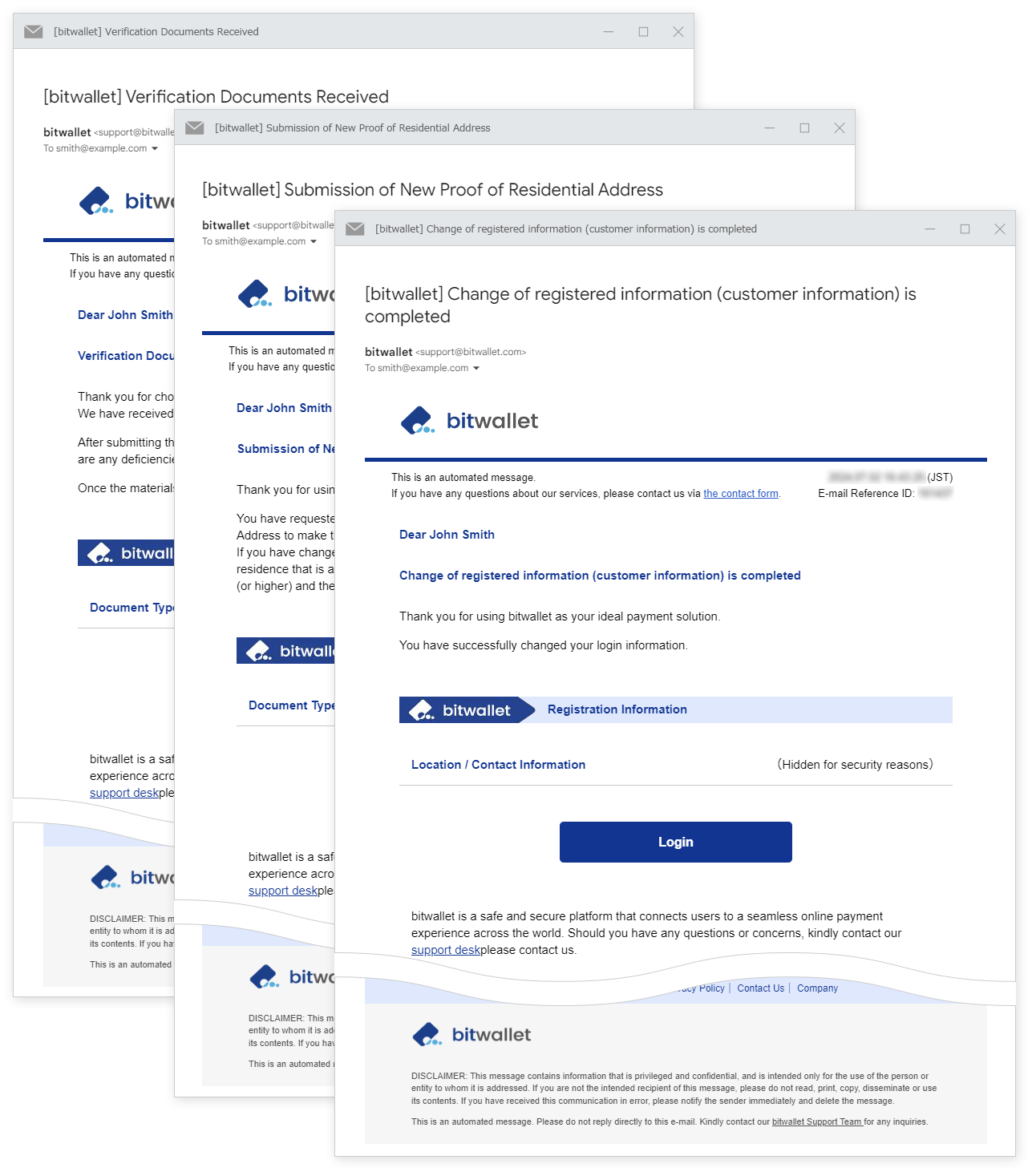 7. Selepas melengkapkan pertukaran alamat dan menyerahkan dokumen, tiga e-mel dengan tajuk berikut akan dihantar ke alamat e-mel berdaftar anda.