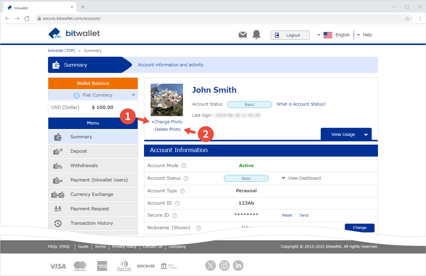 bitwallet hukuruhusu kusajili picha na picha zako uzipendazo kwenye skrini ya "Muhtasari" inayoonekana baada ya kuingia. Picha zinaweza kusajiliwa kwa utendakazi rahisi na zinaweza kubadilishwa mara nyingi upendavyo.